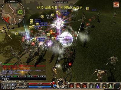 《R2》对战斗系统进行了惊人的改革,在战斗中,目标单位的级别和生命力都是不可见的,玩家之间的PK则不再是数据的比拼,而变成了一次真正的战斗和冒险。除了等级和装备外,玩家获得胜利将会由操作熟练度,药水和魔法的使用技巧,对角色的了解情况以及武器装备等更多因素决定,游戏的战斗具有更多的可操作性,通过不断的努力,玩家可以通过自己的技术弥补数据上的不足,给喜欢挖掘游戏技巧的玩家带来了更多的乐趣。