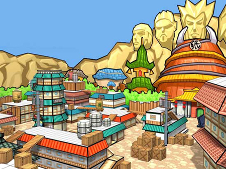 这不就是《火影忍者》中木叶忍者们的大本营木叶村吗?后面是前几代火影大人的雕像!那“呜人”经常吃拉面的那个“一乐拉面馆”在哪呢?