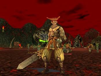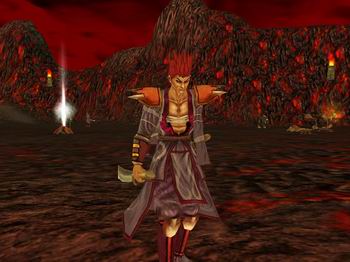 跟随天魔多年的魔将,一身黄锦布衣,刀枪不入;使用一柄鬼炎毒刀,杀人无数,天下鲜有敌手。据说当年在乾坤大战一役天下英雄千人共同与其对战均以失败告终。大战结束后就一直守护着第二天魔,掌并管着通往第二天魔居所的钥匙,同时也是千毒门的首领。