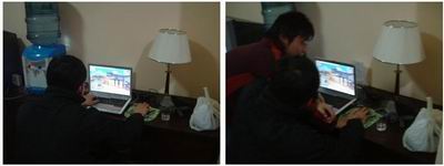 在另一个宿舍中,其它同学们都已经迫不急待的把《纸客帝国》的客户端装到了电脑上。边玩边笑,把同学们都吸引过来了!看来这《纸客帝国》的魅力很大哦!