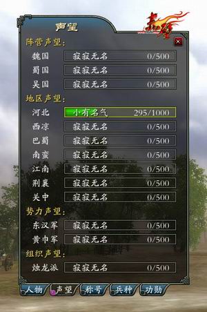 新增两种声望系统,新增声望是以魏蜀吴三国对抗为基础的系统,由于玩家将更多的进入地宫和战场,地宫和战场的声望系统也将全面开放,而这也开启了玩家获取战场和地宫奖励的全新方式。