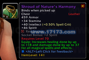 装备:提高治疗效果最多118点,提高法术伤害最多37点