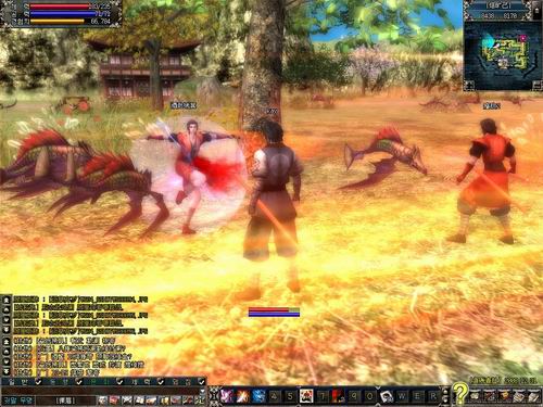 群攻,很多玩家把怪物拖成一群,之后开始群攻。 卷轴式的游戏说明(=。= 都是韩文。。。) 游戏有很强的杀戮感,11级开始有第一个抢阵,开始后会在游戏画面中弹出是否进入抢阵的选择。抢阵主要为三大派系的对抗为主题。
