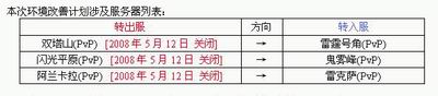 作为首次尝试,我们将选择目前人气较低的三区双塔山、闪光平原、阿兰卡拉这3组服务器作为试点。