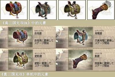 但是17173的编辑在3.19更新后,用客户端提取软件意外地在客户端里发现新增不少还没开放的武器和道具图片,也许这将在后面即将开放,不过最让人振奋的要算透露出来的骑战系统相关物品——从下图我们可以看到网络版的《真三国无双OL》中使用了单机版《真三国无双》的坐骑元素,而这也证明也许在不远的将来,玩家只要获得以下道具将可以骑着“赤兔马”、“飞电马”、“绝影马”甚至“南蛮大象”驰骋沙场!