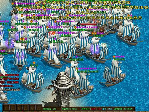 大海战以国家为对抗阵营,玩家进入大海战地图后,都会变成战船形象。靠击沉敌方舰艇赚取资金,系统每隔一段时间也会赠送大量资金给本方玩家,战船利用这些钱可以升级。