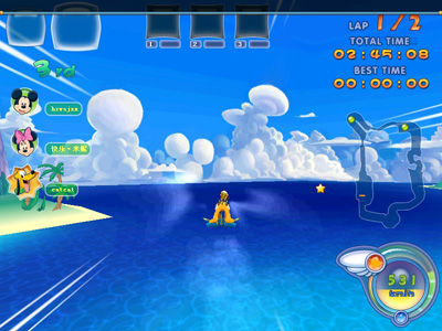 在海岛赛道,你可以在海洋与陆地之间,体验来自身体最原始的感动与力量。一群早已装备齐全的飞板爱好者,等着投入海的怀抱。迪士尼明星们都出动了,米奇、米妮、唐老鸭、黛丝、高飞等等一拥而入,徜徉在海平面上。