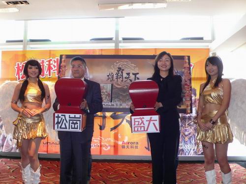 松岗科技董事长郑宏森与盛大首席执行官李瑜手持代表彼此公司的印章,共同完成签约仪式,双方希望藉由彼此长期合作,让游戏在中国**创下好成绩;松岗目前预定五月下旬将在中国**展开《雄霸天下》的封闭测试,未来上市时希望同时上线人数至少达到3万人以上。