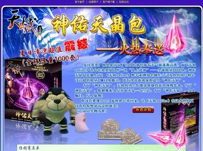 夏日炎炎,何处觅清凉,往日的激情随着天气而逐渐高涨。而《天机(资料 截图 官博)online》决心在炎炎夏日再一次“火上浇油”——全球限量1000份,神佑天晶包震撼上市!《天机online》携手亚洲知名制作公司为热情用户精心设计超值限量T恤以及徽章,更有珍贵游戏虚拟道具“神佑天晶”。