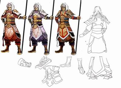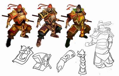 今日,蓝港在线又披露了几张《问鼎》设计原画手稿,包括诸葛亮、张飞、赵云、关羽四个人物。三国演义中,这几位人物可谓蜀国的顶梁。不过遗憾的是,“桃园三结义”中的老大刘备的手稿,未能从官方获得。