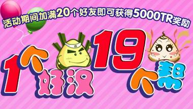 活动期间,好友人数满20个好友,将获得相关奖励(只有竞技场报名玩家并符合要求的才可领到5000TR奖励,奖励在活动结束后三日发放)。