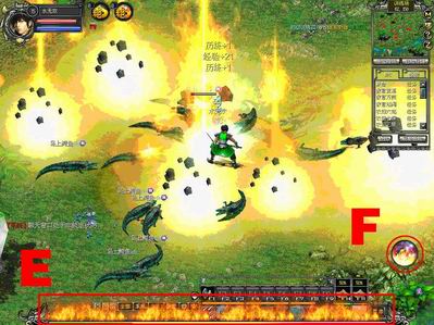 E:玩家按A键施放龙击技时,下放能量槽会燃烧起熊熊烈焰,仿佛提醒玩家,天崩地裂倏然已至。