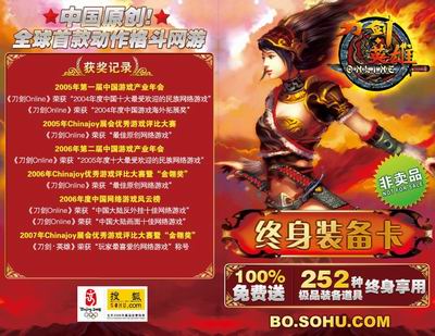 即将于6月19日上线的《刀剑·英雄》2008大型资料片“禹王神骑”为刀剑的江湖世界增添了更多亮丽的风景,为迎接各位新老玩家,《刀剑·英雄》特地准备了一批厚礼回馈大家,这就是全新推出的《刀剑·英雄》“终身装备卡”!它为玩家带来了252种极品装备道具,全部免费送!等级在1级、10级、20级、30级、40级时均可领取到精心为玩家准备的全新套装等贴心奖励,此后每隔10级均可领取一次极品奖励,90级时更可以获得罕见的本职业的转生武器配件。终身装备卡领取途径现已公布,详情请到官方网站查看。
