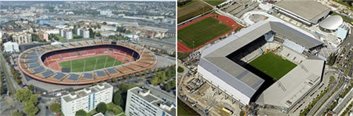 ▲位于瑞士日内瓦的日内瓦足球场(右图)