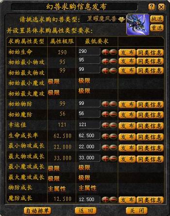 首先看幻兽属性成长值——全新坐骑黑曜魔风兽与赤焰圣歌兽,属于物防型幻兽。它们的主属性物防成长都是27.5,当幻兽等级达到50级,玩家即可通过NPC进行幻兽幻化,对幻兽进行属性加成。玩家可以通过不断转世幻化,从而突破它的极限。物防成长越高,它的防御能力也就越强。玩家还可以通过副属性和初始属性幻化,快速提升幻兽各种能力,但这两种属性加成必须是同种幻兽的幻化,而且副幻兽的副属性或初始属性要超越主幻兽。