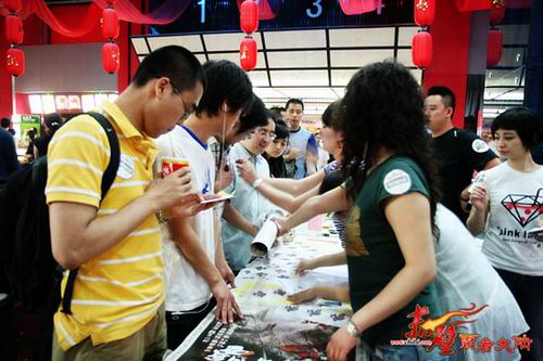 此次《赤壁》点映规模庞大,来自《赤壁》近千名热心玩家以及电影主要演员一同参加了现场活动,并共同观看了华语电影史上投资最大的一部旷世之作《赤壁》。如此与大牌明星近距离接触实属机会难得,而在领略众明星风采的同时,近千名玩家在第一时间观看了万众瞩目的史诗大片,一场惊心动魄的战争场面将所有玩家带回到了千年前的三国。