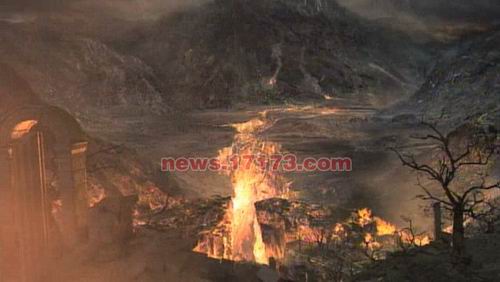 影片开始部分陆续出现了波涛汹涌的大海、电闪雷鸣的天空和四分五裂喷涌着岩浆的大地。在遍布断壁残垣的孤岛上,奥林匹斯圣山上耸立的神殿顶端出现了手持双刃的战神身影,最后,《战神III》的巨大LOGO缓缓出现。