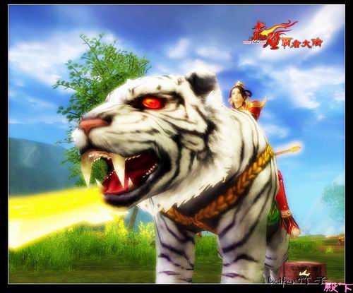 猛虎出笼,雷霆万钧!谁能驭虎而行,纵横霸者大陆?当然是竹子殿下啦!的确,龙腾虎跃,帅气遮天,一把金黄色大刀更加耀眼,可是,我们的主人公竹子呢?只看到竹子的名字漂浮在白虎头上。实在是我们的主人公身材太过娇小,在白虎跃起之时,比它背上的主人还要引人注目啊!