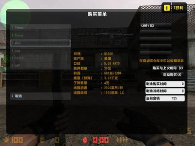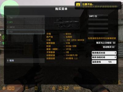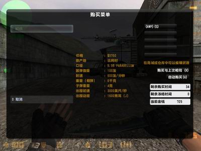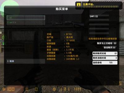 当完成角色的选择之后,接着的就是武器装备购买了。cso的武器装备购买除了沿用cs的快捷键购买之外,为了方便玩家将所有武器装备都进行了列表,可以很轻松的从列表中选择购入心仪的武器装备。在购买时我们还可以看见该件装备的详细参数,帮助玩家更加深刻的了解武器装备的特性。而按A键可以自动购买,按R键可以直接购买上一轮使用的全套装备,这个贴心的设计为玩家省下了不少时间。