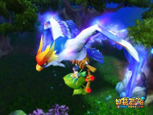 传说中的金翅大鹏神鸟,五彩斑斓的羽毛,气势磅礴的飞行姿态,由它带你自由飞天,畅游在《口袋西游》世界中时,无疑你将成为游戏中的焦点,最拉风最吸引眼球的飞行仙器。
