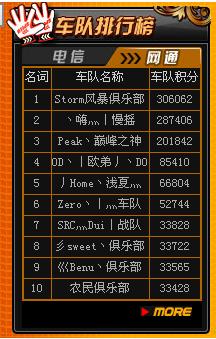 终极较量后,Storm风暴俱乐部 以306,062的积分成为网通区的冠军车队,而丶巛劳资明星o灬更是以41,9761的积分险获电信区的冠军宝座,丶嗨灬丨慢摇、丨HS丨黑鲨战队分别荣获网通电信亚军,Peak丶巅峰之神、绝版灬凰族坐拥季军之座。网通电信的终极排行版如下:
