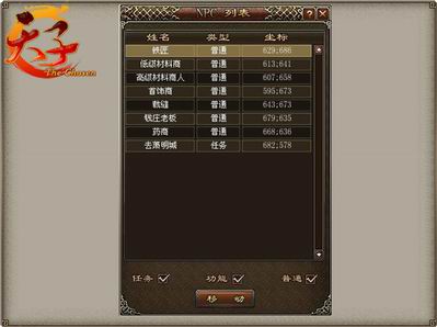 游戏中的怪物、NPC更是多如牛毛,而这么多的怪物以及NPC也是为了使玩家游戏的时候充满乐趣。不过怪物、NPC多了,玩家记起来就会比较困难,哪个怪物、哪个NPC在哪个地图,无从得知。寻找起来更是难上加难!不过在《天子》中,不管是要寻找怪物,还是要寻找NPC,都只要打开“自动寻路选项列表”,所有你想要找的都可以一眼看到。