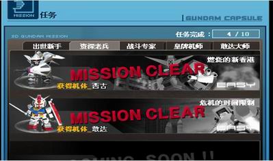 在本次封测中,任务频道只开放了两张任务地图,燃烧新香港和危机时刻的限制。又根据难度的不同分成了五个等级----出世新手,资深老兵,战斗专家,皇牌机师,敢达大师。而任务通关后还有敲扭蛋的机会,如果是第一次通关还有机体奖励和G币。