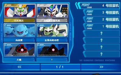 本次封测阶段,现知已开放4台扭蛋机。每台扭蛋机内又包含了6台不同级别的机体,分别是A级、B级、C级、CR级的机体。而4台扭蛋机也均采用G币收费。每次抽取扭蛋机支付1600G币。当然如果是级别越高的机体,那抽出来的概率也将越低。这是一种很依靠运气的获取机体方法。