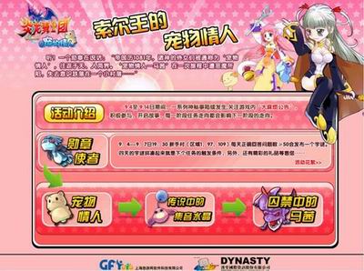 一直以来,炎龙独家特色系统——动态活动,变化与挑战的练级模式、人性化的互动理念、跌宕起伏的剧情设计迎来广大玩家的热烈好评。动态活动中,每一个选择都决定着事件的走向,需要玩家共同努力,整体合作!此次封测再度出击, “索尔王的宠物情人”动态活动正式开启。在为期近一周的活动时间里,《炎龙骑士团(专区 截图)OL—宠物情人》会准备大量精彩好玩的活动,与玩家共度欢乐时光!