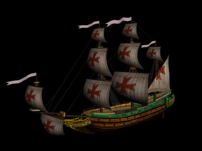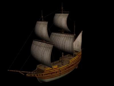 八级武装船,小记较为喜欢的一艘船,尤其是他的前面的了望台,特别令人喜欢,而其三桅的造型也是颇富中世纪欧洲大型远洋帆船的精髓的,而且,只要涂料得当,这艘船会显得非常的华丽与美观,呵呵,挑选出来的模型也证实了这点,大家是不是也很喜欢呢?