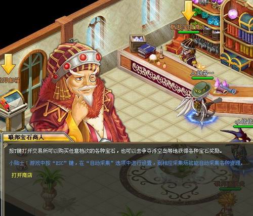 当然啦,除了这些帅哥美女,其他的NPC也各有各的风格,比如总督大人就是一脸博学者的智慧;随时透露着精明眼神的宝石商人;当然,还有一只奇怪的狐狸(猫?土拨鼠?)担任着仓库管理员一职。正是这些充满个性的NPC,让《英雄岛》更丰富更有乐趣,也正是这群注重细节的游戏制作者,给了我们漫画般精美的游戏角色与游戏画面。