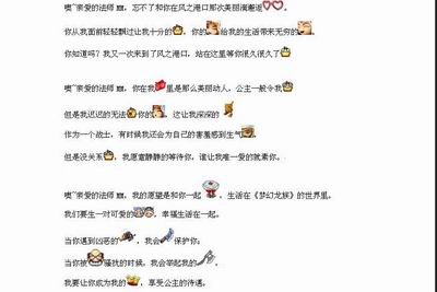 随着《梦幻龙族(专区 截图)》龙之大陆的大门即将开启,来自四面八方的龙之勇者汇聚在此,他们为了保护这个神圣的童话国度而努力着,奋斗着。当然,王子和公主们在不懈战斗的同时也产生了众多浪漫美好的童话故事,其中有一封优美的ML表情组成的情书深深打动着各位MM的心,在这片大陆上广为传播: