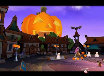 游戏中受人欢迎的场景之一——阳光小镇在不知不觉间用各种装饰点缀着自己,节日的气氛顿时渲染到整个部落——惊竦万圣夜即将开始咯。而此刻,那些地狱领主BOSS们也不甘寂寞,偷偷戴上了南瓜头,想加入人类的假面狂欢。部落的勇士们赶紧拿上守护家园的各种球拍,与这些凶残的怪兽们一决高下吧。