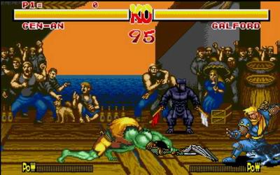 在街霸、饿狼等对战类游戏席卷市场之际,东芝EMI在SFC主机上推出的一款原创FTG。本作中引入了前冲、疾退、空中防御等许多先进的概念,尤其是史上首次的投技受身设定,甚至要比CAPCOM和SNK更加早!可惜游戏是发售在家用机上,尽管在人设以及操作方面表现不俗,却无法引起此类游戏的主要受众面——街机仔们更多的重视。游戏共有8名角色可以选择,最终BOSS是号称宇宙最强战士的ZENO。