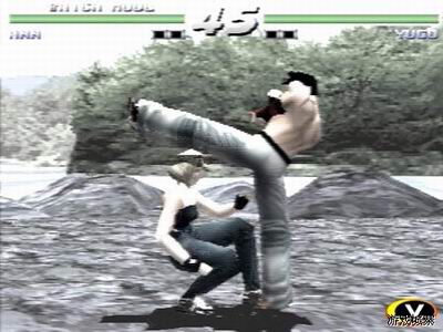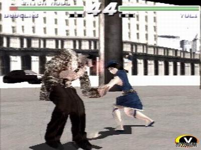 至于这款PS版,在机能方面虽然存在明显的差距,但由于并不是忠实移植,游戏的效果还算不错,角色贴膜的圆滑程度、光影的描绘都相当出色,单从画面来说,本作绝对是PS上的3D对战游戏中的上乘水准。而登场的角色也全部在20人以上,且分为不同的流派。不过在操作方面游戏显得比较古怪:很多角色都能够凭借单一的按键就打出多段的连续技,既缺乏技术含量,也难以产生打击的满足感,而角色的动作也让人觉得不舒服。KONAMI在此类强调肢体表现的作品方面似乎总是如此,当初该厂的清版打斗类游戏就总让人觉得怪异,现在在对战类的表现上依然是不尽人意,毕竟人无完人啊。