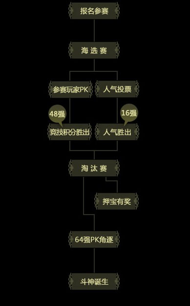 本次大赛为全程网络赛,历时一个月左右,分海选赛和淘汰赛两个阶段。大赛以《刀剑•英雄》所独有的“斗神坛”为官方对战平台,玩家凭游戏账号报名参赛。在海选赛期间,共设两种晋级途径供玩家选择,你可以通过实力或人气进入淘汰赛。海选赛阶段的最后一场比赛将于今日17点——22点结束,活动报名也将于今日比赛后截止。