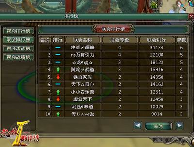 暂且不论《武林群侠传2》每组服务器中各联会的实力与排行,单单是充满个性的联会名称,就已经足够吸引人,例如电信君王服“**”、电信巅峰服的“小小安乐窝”、网通昆仑服的“风|月”、网通武圣服的“名人堂”等等。有的联会主要追求财富,通过经营帮会商店为联会升级积累资金、储备力量;有的联会崇尚战斗,通过不断提高联会成员的等级以便参加游戏中各大活动,诸如帮会挑战赛等等,不论从商还是从武,最终都是为联会增加积分和令誉值。