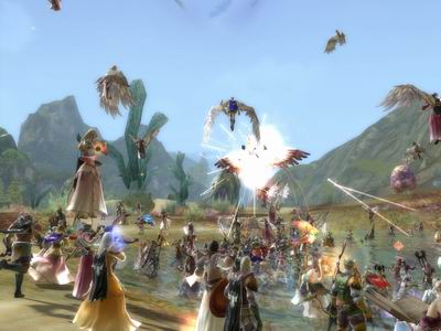 此图为第一次正面交锋场景,众多守护者蜂拥而至,战况异常热烈。