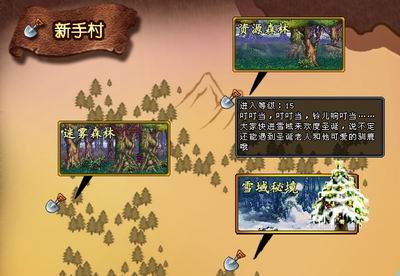 『雪域秘境』是圣诞节在新手村副本群开放的新副本,在『雪域秘境』内每个房间有雪球机关,会间歇性从天往下砸雪球,能将人震倒,并变成雪人跳三下(囧)。怕冷的小怪都戴上了圣诞帽,同时副本内还有许多圣诞树,击打圣诞树后可掉落道具。