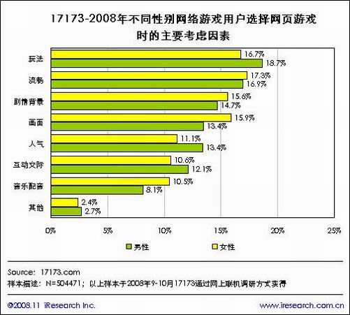 性别对于用户选择网页游戏的影响力巨大,男性用户对于战争策略游戏的支持率达到28.4%,而女性用户则将这类游戏视为最不喜欢的游戏,相反,在女性用户中比较受欢迎的音乐舞蹈游戏在男性中的支持率仅4.6%,亦是男性用户最不喜欢的游戏。