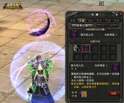 传说二:只要收集齐熔炼所需消耗的材料,便可给法器“堕天使之羽”进行熔炼,最高可以熔炼至10级。熔炼后的堕天使之羽将会根据等级而降低技能的冷却时间。