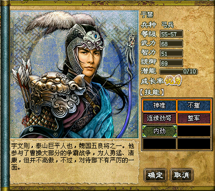 于禁,魏国五子良将之一。早期随鲍信起兵讨黄巾,后来归附曹操,被任为军司马。从此跟随曹操四处征战,功勋显著。在全新三国中,于禁身为弓兵,在所属兵种中也是实力超群。