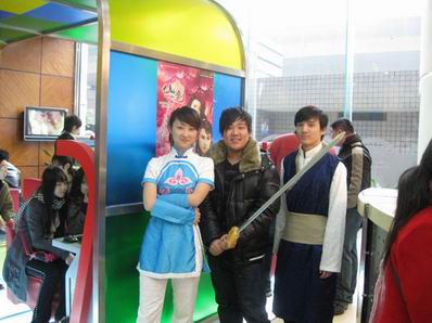穿越时空的仙剑?旁边一位现代装的仙剑迷已经拿着一把“仙剑”和古装的李逍遥、赵灵儿开始合影了,脸上的是止不住的欢笑。