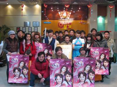 最后,所有参加活动的仙剑迷们来了一次大合照,其中帅哥美女真是不少,不过最让人眼馋的更是他们手中的《仙剑OL》新春海报,口水啊!