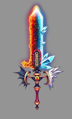 本次曝光的原画中最具亮点要属这把双手剑了,超酷的造型将这柄剑置身于两个极端,一面是烈火与恶魔之翼,一面是寒冰与天使之羽,极富创意的外形着实让人为之兴叹!这亦正亦邪的宝剑难道拥有着两种属性?还是与即将推出的冰封龙穴中的冰、火龙王有着密切的关联呢?