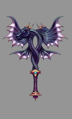暗紫色的斧身由两条紫龙盘绕而成,巨大的龙翼展开而形成的斧刃无不象征着这巨斧强大的杀伤力,难道这把巨斧也和龙有着些许渊源?
