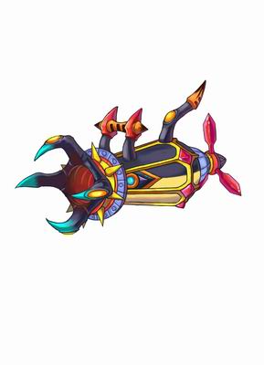 备具特色的红色螺旋式的矛头上布满了白色的突刺,一环一环的缠绕着矛身直至其顶端!似乎在暗示它超快的攻速和可怕的杀伤力!