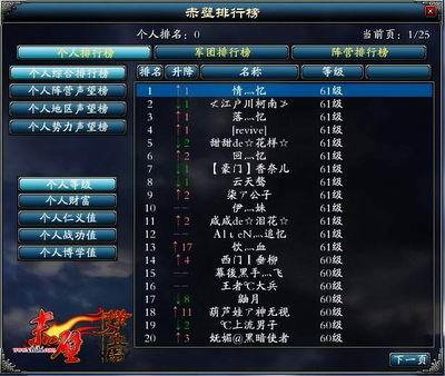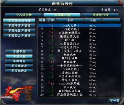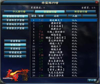 与此同时,网通一区太极服务器的排行榜上更是硝烟四起,排行前几名的争夺真是一天一变,相当激烈,在军团人数排行中,各个军团更是使出了看家本事,到底谁将最后夺冠,让我们拭目以待!