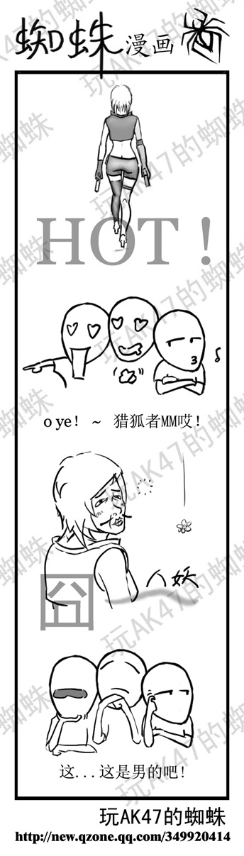 其中以玩家“玩AK47的蜘蛛”在去年岁末推出的《穿越火线》蜘蛛漫画最受广大CF爱好者的欢迎,由“玩AK47的蜘蛛”创作的《穿越火线》主题漫画(现称作蜘蛛漫画)已经在相关网页刊登了许多集了,关注蜘蛛漫画的玩家们也感受到了它带来的欢乐。如今“玩AK47的蜘蛛”更是再接再厉,匠心独具的推出首部FLASH动画作品“幽灵地带”,相信“幽灵地带”的FLASH将会给更多的玩家带来游戏以外的乐趣。