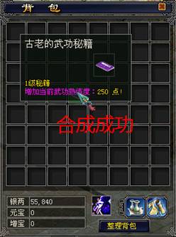 B:通过合成武功心法熟练度秘籍,来提升武功和心法熟练度。(功效显著,可以速成)